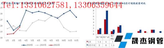 盤線方面,據(jù)我網(wǎng)對京津冀區(qū)域盤線無縫厚壁鋼管廠家投放量調研,2月份盤線實際投放量19.6萬噸,環(huán)比增加2萬噸,3月投放量計劃20.4萬噸。1、河鋼樂鋼盤螺產(chǎn)線不定期生產(chǎn),且以品種線為主,3月盤線計劃生產(chǎn)3萬噸;2、九江無縫厚壁鋼管廠家品種線生產(chǎn)為主,暫不計劃盤線;3、東華無縫厚壁鋼管廠家兩條盤螺產(chǎn)線在產(chǎn),但以品種線生產(chǎn)為主,2月盤線計劃產(chǎn)量僅3萬噸。
