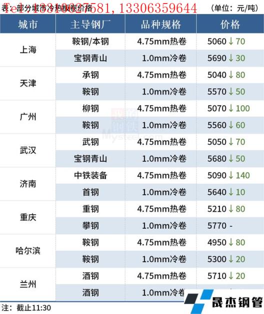 ◎樂從:10日早盤熱卷市場價格下跌100,4.75以上普柳燕5070-5080,2.75普5280-5430錳5250-5270。(單位:元/噸)