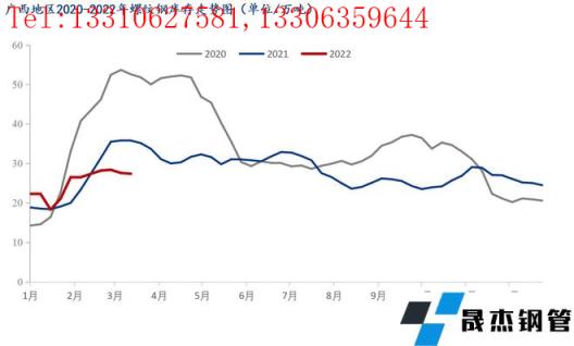 圖表二:廣西地區螺紋鋼庫存走勢圖