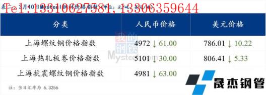 分地區方面,上海螺紋鋼價格指數4972,下跌61.0;上海熱軋板卷價格指數5101,下跌30.0。(單位:元/噸)