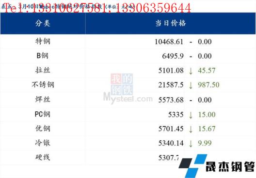 3月10日普鋼絕對價格指數變化:綜合指數5227.06,下跌43.55;螺紋鋼指數4971.9,下跌33.77;線材指數5306.03,下跌36.04;熱軋板卷指數5126.23,下跌55.04;冷軋板卷指數5596.4,下跌42.23;中厚板指數5202.78,下跌39.65。