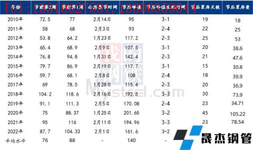 表1:近年來春節前后廣州市場建筑厚壁無縫鋼管庫存對比(來源:鋼聯數據)