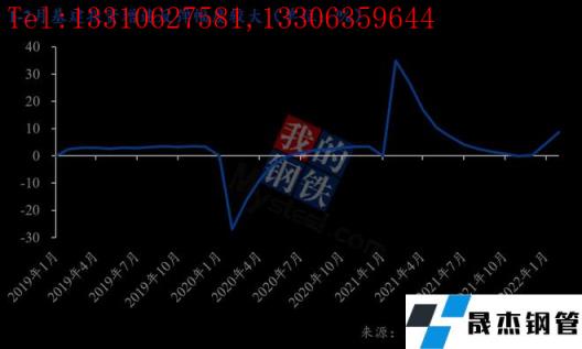 房地產數據表現超預期,而且改善程度之大可能是大多數人未預料到的。全國房地產開發投資同比增長3.7%,施工面積同比增長1.8%;商品房銷售面積同比下降9.6%,新開工面積同比下降12.2%。去年12月,施工面積和新開工面積同比增速均降至-30%以下,此次施工面積同比轉正,且商品房銷售面積和新開工面積同比降速收窄幅度大。另外,竣工面積同比增速確意外地轉負。這些數據與我們觀察到的高頻數據和得到的調研結論(見附錄)表現具有較大差異。同時,國房景氣指數已經止住自去年5月以來的下跌趨勢,1-2月該指數環比去年12月略微回升。我們提示,國房景氣指數是觀察房地產行業和厚壁無縫鋼管價格的重要先行指標,若該指數反映情況真實,房地產行業有望在2季度末之前“提前”企穩,或將對厚壁無縫鋼管價格形成一定的支撐。