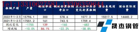 綜上所述,1-2月粗鋼實際消費同比降幅僅為5%,明顯高于市場預期。但從后期供需預估表現(xiàn)來看,厚壁無縫鋼管復產(chǎn)節(jié)奏或高于需求釋放力度,進而使得消費承壓,價格上漲難度加大。