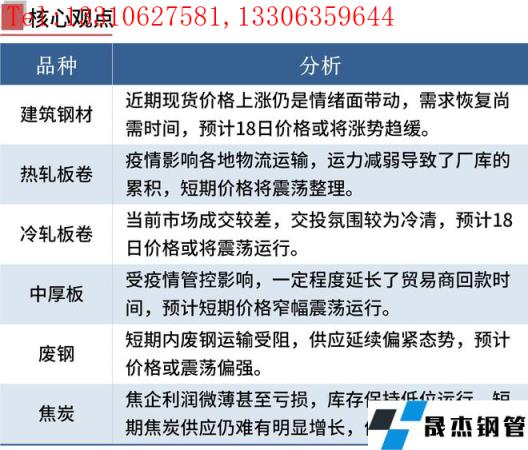 建筑厚壁無縫鋼管:3月17日,全國31個主要城市20mm三級抗震螺紋鋼均價4940元/噸,較上個交易日上漲32元/噸。本周受山西無縫厚壁鋼管廠家復(fù)產(chǎn)影響,產(chǎn)量繼續(xù)小幅回升,社會庫存繼續(xù)下降,但廠庫受疫情影響有所增加,本周表觀消費出現(xiàn)回落。短期來看,近期現(xiàn)貨價格上漲仍是情緒面帶動,需求恢復(fù)尚需時間,短期還需要關(guān)注疫情對于需求復(fù)蘇影響。綜合來看,預(yù)計18日國內(nèi)建筑厚壁無縫鋼管價格或?qū)q勢趨緩為主。
