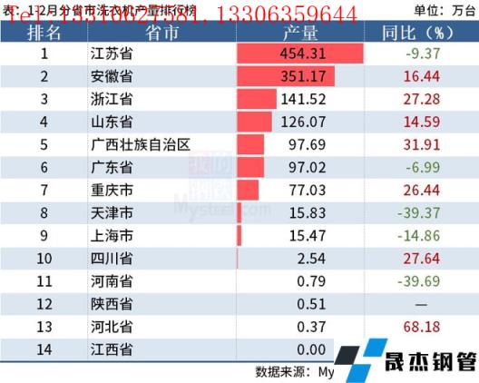 從分省市數(shù)據(jù)來看,1-2月共有4個(gè)省市洗衣機(jī)產(chǎn)量超100萬臺(tái),其中江蘇省以產(chǎn)量454.31萬臺(tái)排名第一,安徽省產(chǎn)量351.17萬臺(tái)排名第二,浙江省產(chǎn)量141.52萬臺(tái)排名第三。