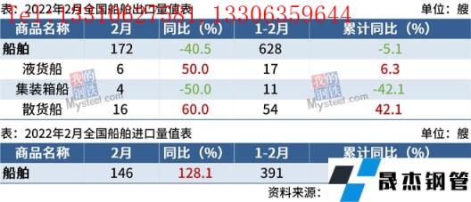 免責聲明:本網站(山東聊城晟杰無縫鋼管廠m.51pvc.cn)刊載的“海關總署:2月中國船舶進口146艘,同比增長128.1%”等均源于網絡,版權歸原作者所有,且僅代表原作者觀點,本文所載信息僅供參考。轉載僅為學習與交流之目的,如無意中侵犯您的合法權益,請及時聯系刪除。本網站刊登此篇文章并不意味著本站贊同其觀點或證實其內容的真實性,我們不對其科學性、嚴肅性等作任何形式的保證。如果侵犯了您的版權,請盡快聯系我們予以撤銷,謝謝合作!