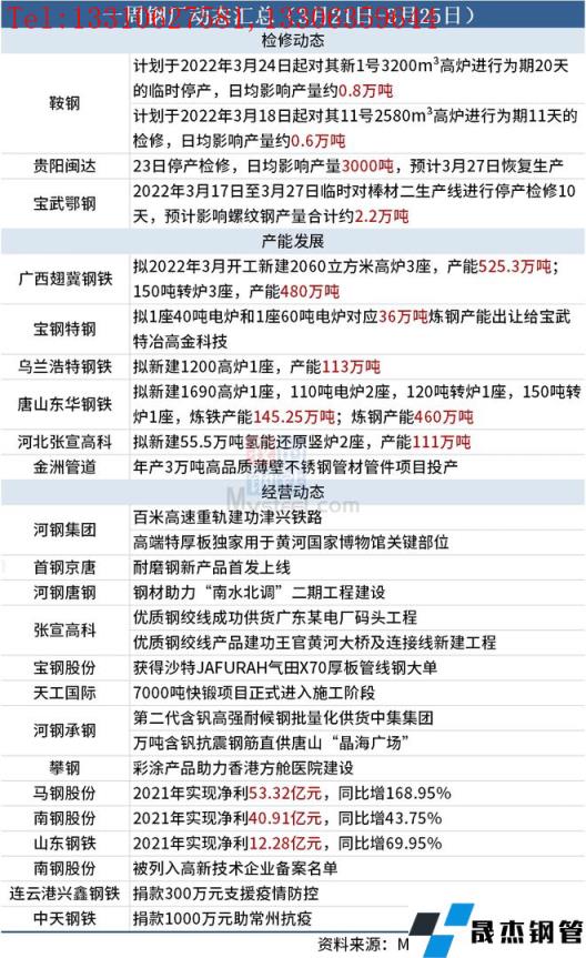 免責聲明:本網站(山東聊城晟杰無縫鋼管廠m.51pvc.cn)刊載的“一周無縫鋼管廠家動態匯總(3月21日-3月25日)”等均源于網絡,版權歸原作者所有,且僅代表原作者觀點,本文所載信息僅供參考。轉載僅為學習與交流之目的,如無意中侵犯您的合法權益,請及時聯系刪除。本網站刊登此篇文章并不意味著本站贊同其觀點或證實其內容的真實性,我們不對其科學性、嚴肅性等作任何形式的保證。如果侵犯了您的版權,請盡快聯系我們予以撤銷,謝謝合作!