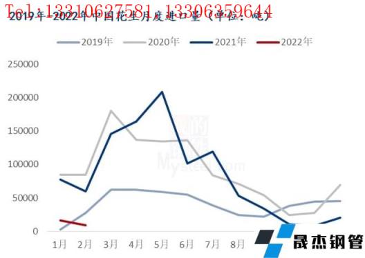 2022年1-2月份,進口花生總量為24966噸,與去年同期相比減少112458噸,降幅為81.83%。在油廠榨力明顯好轉的情況下,對國內花生需求量持續增加。進入4-5月份,預計進口花生將集中到港,或將抑制國產花生行情,油廠對于國內花生的需求在一定程度上將有所減少。