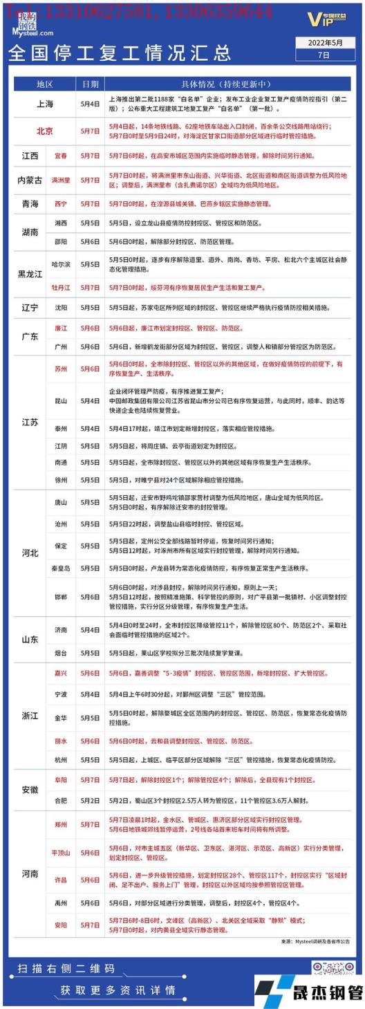 免責聲明:本網站(山東聊城晟杰無縫鋼管廠m.51pvc.cn)刊載的“疫情影響丨全國停工復工情況匯總(5月7日)”等均源于網絡,版權歸原作者所有,且僅代表原作者觀點,本文所載信息僅供參考。轉載僅為學習與交流之目的,如無意中侵犯您的合法權益,請及時聯系刪除。本網站刊登此篇文章并不意味著本站贊同其觀點或證實其內容的真實性,我們不對其科學性、嚴肅性等作任何形式的保證。如果侵犯了您的版權,請盡快聯系我們予以撤銷,謝謝合作!