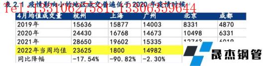 自3月中旬以來(lái),受上海、江蘇、山東等地疫情封控影響,下游工地施工節(jié)奏大幅放緩。華東地區(qū)螺紋鋼表觀消費(fèi)量3月中旬為156萬(wàn)噸/周,4月中旬僅119萬(wàn)噸/周,下降了23%。若長(zhǎng)三角疫情在5月上旬得到控制,復(fù)工復(fù)產(chǎn)逐步有序恢復(fù)。我們根據(jù)歷史經(jīng)驗(yàn)和今年的需求特點(diǎn),推演認(rèn)為螺紋周均表需(鋼聯(lián)口徑)有望達(dá)到340-350萬(wàn)噸/周。而其他受疫情影響較小的地區(qū),社庫(kù)去庫(kù)速率緩慢,成交低于2020年同期,實(shí)際厚壁無(wú)縫鋼管需求不容樂觀,疫情結(jié)束后這些地區(qū)為需求帶來(lái)的增量有限。