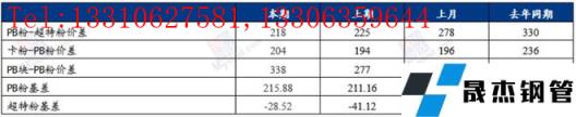 華東區域本周進口礦價格震蕩下行,五一假期之后無縫厚壁鋼管廠家并未著急補庫,市場整體交投情緒不及預期。截止本周五,青島港口行情價格PB粉942元/噸,周環比下跌36元/噸;超特粉724元/噸,周環比下跌29元/噸;卡粉1146元/噸,周環比下跌26元/噸;PB塊1280元/噸,周環比上漲25元/噸,粉塊價差進一步擴大。