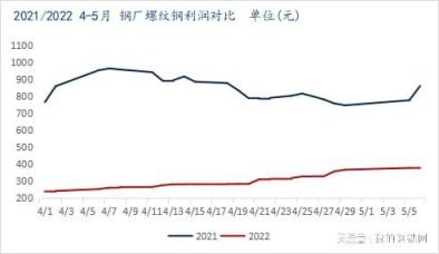2022年4月螺紋鋼社會庫存為6464.2萬噸,2021年為7120.72萬噸,同比下降9.2%,兩年同期相比社會庫存變化存在明顯差異,21 年4月初較月末庫存消耗了近340萬噸,22年受疫情影響明顯,消耗則不足百噸。足見“動態(tài)清零”、“區(qū)域靜默”對市場活力的影響不容小覷。