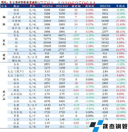 免責聲明:本網站(山東聊城晟杰無縫鋼管廠m.51pvc.cn)刊載的“周報:大宗工業原材料、能源及農產品價格周報(4.29-5.06)”等均源于網絡,版權歸原作者所有,且僅代表原作者觀點,本文所載信息僅供參考。轉載僅為學習與交流之目的,如無意中侵犯您的合法權益,請及時聯系刪除。本網站刊登此篇文章并不意味著本站贊同其觀點或證實其內容的真實性,我們不對其科學性、嚴肅性等作任何形式的保證。如果侵犯了您的版權,請盡快聯系我們予以撤銷,謝謝合作!