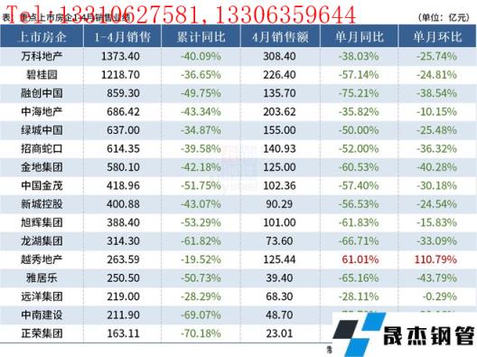 免責(zé)聲明:本網(wǎng)站(山東聊城晟杰無縫鋼管廠m.51pvc.cn)刊載的“16家重點房企4月銷售同比降幅擴(kuò)大,樓市“小陽春”未現(xiàn)”等均源于網(wǎng)絡(luò),版權(quán)歸原作者所有,且僅代表原作者觀點,本文所載信息僅供參考。轉(zhuǎn)載僅為學(xué)習(xí)與交流之目的,如無意中侵犯您的合法權(quán)益,請及時聯(lián)系刪除。本網(wǎng)站刊登此篇文章并不意味著本站贊同其觀點或證實其內(nèi)容的真實性,我們不對其科學(xué)性、嚴(yán)肅性等作任何形式的保證。如果侵犯了您的版權(quán),請盡快聯(lián)系我們予以撤銷,謝謝合作!