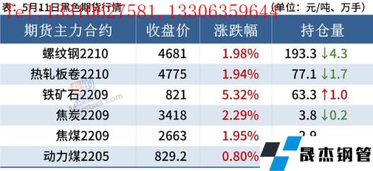 焦炭:5月11日,焦炭市場偏弱運行,焦炭市場全面落實第二輪降價,累計降幅為400元/噸。焦企前期焦化利潤修復,產地開工多提升至高位,焦炭供應相對有保證,即產即銷,多以積極出貨為主。無縫厚壁鋼管廠家方面,無縫厚壁鋼管廠家開工仍在高位,剛需仍在,無縫厚壁鋼管廠家多有意控制到貨節奏。焦煤方面,前期降價后出貨仍不佳,部分煤礦庫存累積,今日山西焦煤價格下跌100-250元/噸,焦炭成本支撐開始下行,預計短期內焦炭市場偏弱運行。