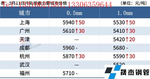 冷軋板卷:5月11日,全國24個主要城市1.0mm冷卷均價5576元/噸,較上個交易日持上漲2元/噸。市場方面,隨著熱卷期貨止跌反彈,市場交投氛圍有所好轉,市場成交明顯增量。商家表示,前期市場價格持續下行,下游多持觀望態度,隨著價格逐步企穩,前期被抑制的需求有所放量。心態方面,全國疫情散點式爆發,加之南方近期進入汛期,市場需求或將有所滯后,商家心態多謹慎,當下操作以出貨成交為主。綜上所述,預計12日全國冷軋板卷價格或將窄幅震蕩運行。