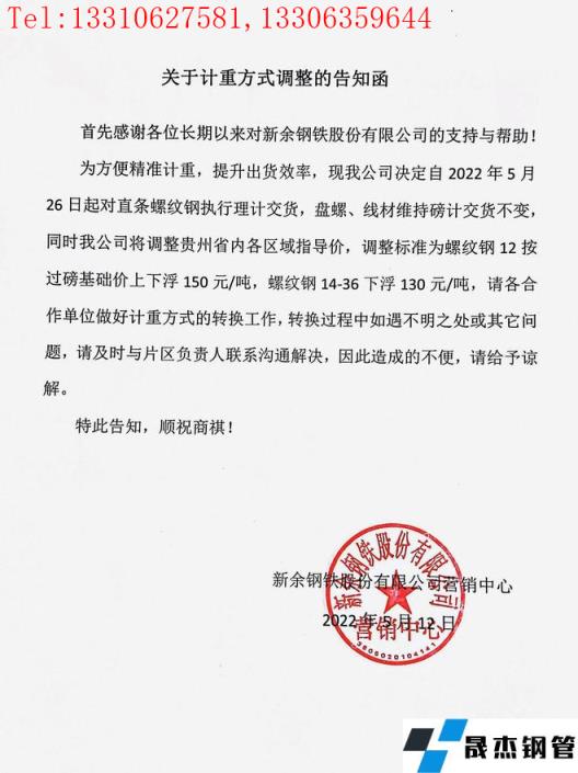 免責(zé)聲明:本網(wǎng)站(山東聊城晟杰無縫鋼管廠m.51pvc.cn)刊載的“新余鋼鐵股份有限公司關(guān)于對貴州區(qū)域計(jì)重方式調(diào)整的告知函”等均源于網(wǎng)絡(luò),版權(quán)歸原作者所有,且僅代表原作者觀點(diǎn),本文所載信息僅供參考。轉(zhuǎn)載僅為學(xué)習(xí)與交流之目的,如無意中侵犯您的合法權(quán)益,請及時(shí)聯(lián)系刪除。本網(wǎng)站刊登此篇文章并不意味著本站贊同其觀點(diǎn)或證實(shí)其內(nèi)容的真實(shí)性,我們不對其科學(xué)性、嚴(yán)肅性等作任何形式的保證。如果侵犯了您的版權(quán),請盡快聯(lián)系我們予以撤銷,謝謝合作!