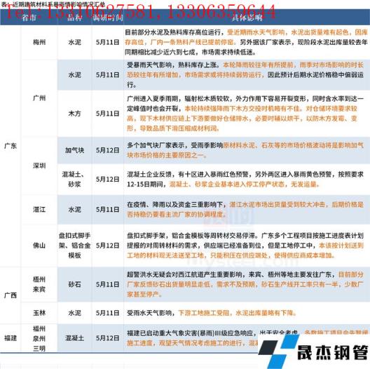今年以來最強(qiáng)降雨過程已經(jīng)在華南拉開帷幕。據(jù)氣象水文部門預(yù)測(cè),5月9日至13日江南南部和華南地區(qū)將迎來入汛以來最強(qiáng)降雨過程,本輪強(qiáng)降雨覆蓋范圍廣、持續(xù)時(shí)間長、累計(jì)雨量大、局地雨勢(shì)猛,廣東、廣西、福建、重慶、四川、貴州、云南省(自治區(qū)、直轄市)等多地啟動(dòng)防汛Ⅳ級(jí)應(yīng)急響應(yīng),部分強(qiáng)降雨天氣影響下多地施工進(jìn)度受損,運(yùn)輸和終端施工進(jìn)度受限,建筑材料市場(chǎng)行情弱勢(shì)運(yùn)行。