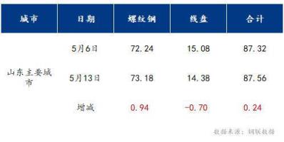 本周山東市場主要城市螺紋鋼社會庫存73.18萬噸,較上周增加0.94萬噸;盤螺社會庫存14.38萬噸,較上周減少0.7萬噸;總庫存87.56萬噸,降0.24萬噸。
