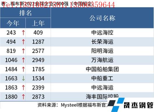 免責聲明:本網站(山東聊城晟杰無縫鋼管廠m.51pvc.cn)刊載的“:中國8家船企上榜福布斯2022全球企業2000強”等均源于網絡,版權歸原作者所有,且僅代表原作者觀點,本文所載信息僅供參考。轉載僅為學習與交流之目的,如無意中侵犯您的合法權益,請及時聯系刪除。本網站刊登此篇文章并不意味著本站贊同其觀點或證實其內容的真實性,我們不對其科學性、嚴肅性等作任何形式的保證。如果侵犯了您的版權,請盡快聯系我們予以撤銷,謝謝合作!