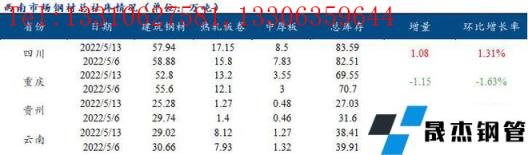 據(jù)調(diào)研,截止2022年5月13日,西南市場厚壁無縫鋼管累計(jì)社會(huì)庫存為218.58萬噸,環(huán)比減少6.14萬噸,降幅2.73%。分省份來看,本周四川市場厚壁無縫鋼管庫存為83.59萬噸,環(huán)比增加1.08萬噸,漲幅1.31%;重慶市場厚壁無縫鋼管庫存為69.55萬噸,環(huán)比減少1.15萬噸,降幅1.63%;貴州市場厚壁無縫鋼管庫存為27.03萬噸,環(huán)比減少4.57萬噸,降幅14.46%;云南市場厚壁無縫鋼管庫存為38.41萬噸,環(huán)比減少1.5萬噸,降幅3.76%。