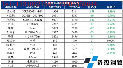 免責(zé)聲明:本網(wǎng)站(山東聊城晟杰無縫鋼管廠m.51pvc.cn)刊載的“建筑原材料周報(5.9-5.13)”等均源于網(wǎng)絡(luò),版權(quán)歸原作者所有,且僅代表原作者觀點,本文所載信息僅供參考。轉(zhuǎn)載僅為學(xué)習(xí)與交流之目的,如無意中侵犯您的合法權(quán)益,請及時聯(lián)系刪除。本網(wǎng)站刊登此篇文章并不意味著本站贊同其觀點或證實其內(nèi)容的真實性,我們不對其科學(xué)性、嚴(yán)肅性等作任何形式的保證。如果侵犯了您的版權(quán),請盡快聯(lián)系我們予以撤銷,謝謝合作!
