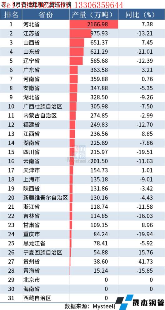 免責聲明:本網站(山東聊城晟杰無縫鋼管廠m.51pvc.cn)刊載的“統計局:前4月全國分省市粗鋼產量出爐,河北降17%”等均源于網絡,版權歸原作者所有,且僅代表原作者觀點,本文所載信息僅供參考。轉載僅為學習與交流之目的,如無意中侵犯您的合法權益,請及時聯系刪除。本網站刊登此篇文章并不意味著本站贊同其觀點或證實其內容的真實性,我們不對其科學性、嚴肅性等作任何形式的保證。如果侵犯了您的版權,請盡快聯系我們予以撤銷,謝謝合作!