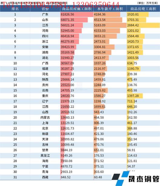 免責聲明:本網站(山東聊城晟杰無縫鋼管廠m.51pvc.cn)刊載的“統計局:前4月分省市房地產投資出爐,過半數同比下降”等均源于網絡,版權歸原作者所有,且僅代表原作者觀點,本文所載信息僅供參考。轉載僅為學習與交流之目的,如無意中侵犯您的合法權益,請及時聯系刪除。本網站刊登此篇文章并不意味著本站贊同其觀點或證實其內容的真實性,我們不對其科學性、嚴肅性等作任何形式的保證。如果侵犯了您的版權,請盡快聯系我們予以撤銷,謝謝合作!