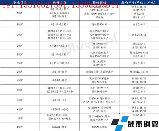 江蘇無縫厚壁鋼管廠家本周影響產量小幅增加,共計13家無縫厚壁鋼管廠家非正常生產,較上周檢修停產鋼企數量持平,目前鐵水影響產量較上周減少0.3萬噸 /日,粗鋼影響產量較上周持平 ,成材影響產量減少0.24萬噸 /日。目前廢鋼資源緊缺,短期難以緩解,大部分電弧爐廠利潤出現虧損,厚壁無縫鋼管價格如若繼續下跌,后期將觸發電弧爐產量縮減。具體情況及各主要品種日均影響產量(單位:萬噸)詳見下表: