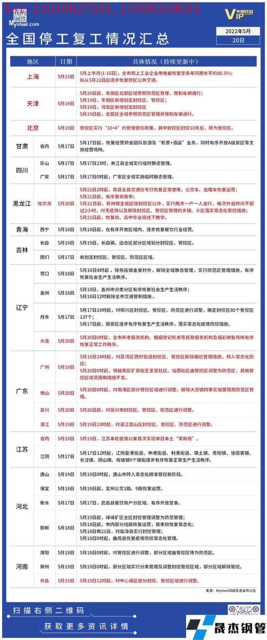 免責聲明:本網站(山東聊城晟杰無縫鋼管廠m.51pvc.cn)刊載的“疫情影響丨全國停工復工情況匯總(5月20日)”等均源于網絡,版權歸原作者所有,且僅代表原作者觀點,本文所載信息僅供參考。轉載僅為學習與交流之目的,如無意中侵犯您的合法權益,請及時聯系刪除。本網站刊登此篇文章并不意味著本站贊同其觀點或證實其內容的真實性,我們不對其科學性、嚴肅性等作任何形式的保證。如果侵犯了您的版權,請盡快聯系我們予以撤銷,謝謝合作!