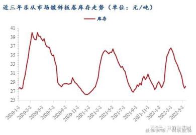從上圖可以看出,樂從市場鍍鋅板卷庫存每年走勢均是在春節(jié)后開始累庫,且在3-5月達(dá)到全年的峰值。