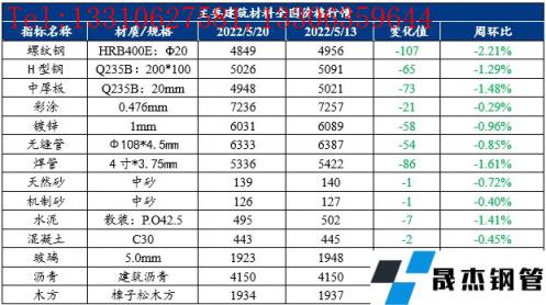 免責聲明:本網站(山東聊城晟杰無縫鋼管廠m.51pvc.cn)刊載的“建筑原材料周報(5.16-5.20)”等均源于網絡,版權歸原作者所有,且僅代表原作者觀點,本文所載信息僅供參考。轉載僅為學習與交流之目的,如無意中侵犯您的合法權益,請及時聯系刪除。本網站刊登此篇文章并不意味著本站贊同其觀點或證實其內容的真實性,我們不對其科學性、嚴肅性等作任何形式的保證。如果侵犯了您的版權,請盡快聯系我們予以撤銷,謝謝合作!