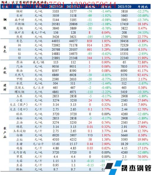 免責聲明:本網站(山東聊城晟杰無縫鋼管廠m.51pvc.cn)刊載的“周報:大宗工業原材料、能源及農產品價格周報(5.16-5.20)”等均源于網絡,版權歸原作者所有,且僅代表原作者觀點,本文所載信息僅供參考。轉載僅為學習與交流之目的,如無意中侵犯您的合法權益,請及時聯系刪除。本網站刊登此篇文章并不意味著本站贊同其觀點或證實其內容的真實性,我們不對其科學性、嚴肅性等作任何形式的保證。如果侵犯了您的版權,請盡快聯系我們予以撤銷,謝謝合作!