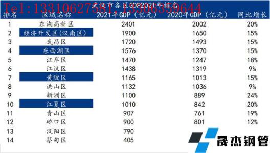 表2:武漢市各區GDP2021年排名