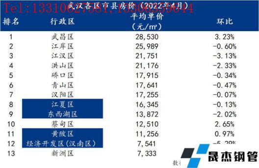 表3:武漢各區市縣住房平均單價水平