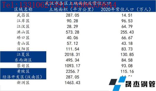 表4:武漢市各區土地面積及常住人口情況