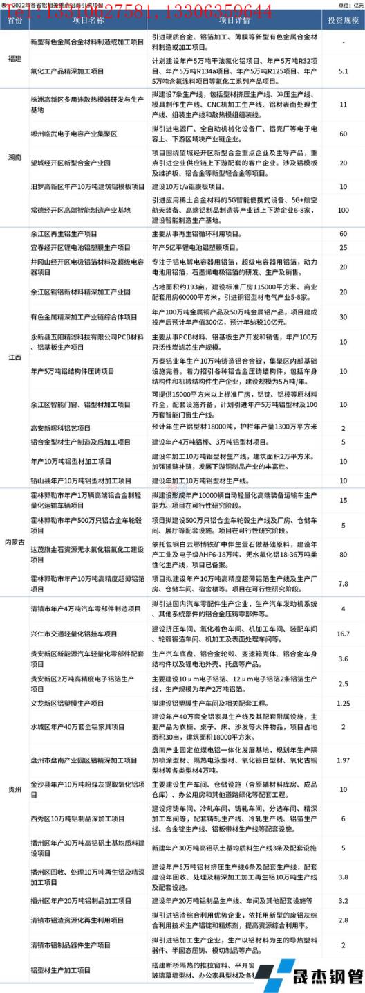 近期各地陸續發布2022年重點招商項目清單,據不完全統計,截至5月26日,共有5個省份發布的2022年重點招商項目清單中涉及鋁相關項目,合計共39項,總投資規模592億元。詳情名單如下:
