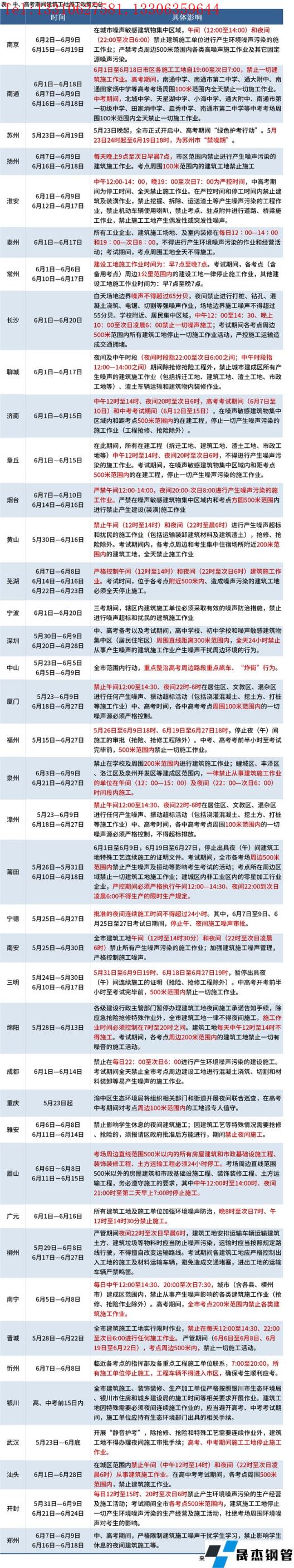 免責聲明:本網站(山東聊城晟杰無縫鋼管廠m.51pvc.cn)刊載的“中高考期間,40城建筑工地停工政策匯總”等均源于網絡,版權歸原作者所有,且僅代表原作者觀點,本文所載信息僅供參考。轉載僅為學習與交流之目的,如無意中侵犯您的合法權益,請及時聯系刪除。本網站刊登此篇文章并不意味著本站贊同其觀點或證實其內容的真實性,我們不對其科學性、嚴肅性等作任何形式的保證。如果侵犯了您的版權,請盡快聯系我們予以撤銷,謝謝合作!