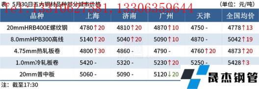 ◎ 5月30日,杭州升華物流港庫存44.81萬噸,其中建材庫存32.61萬噸,工業材庫存11.64萬噸,其它品種庫存0.56萬噸。昨日共出庫0.17萬噸,其中螺紋鋼出庫0.09萬噸,盤螺出庫0.01萬噸,線材出庫0.01萬噸,圓鋼出庫0.06萬噸。昨日卸船11船;今日在卸18船,待卸110船(其中螺紋鋼44條,盤螺線材10條)。