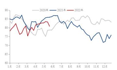 首先,供給端方面,據(jù)調(diào)研顯示,截至2022年5月27日,37家熱軋板卷生產(chǎn)企業(yè)中,無縫厚壁鋼管廠家產(chǎn)能利用率為80.87%,能夠從圖2可以觀察到2022年1-5月份,熱軋產(chǎn)能利用率是低于2021年同期水平,因此無縫厚壁鋼管廠家熱軋產(chǎn)量給到市場的供給壓力是在持續(xù)減弱,對于熱軋價格起到了一定的支撐作用。再來看下無縫厚壁鋼管廠家的冷軋產(chǎn)能利用率, 2020年與2021年冷軋產(chǎn)能利用率均值分別為77.96%與81.05%。截至2022年5月27日,29家冷軋板卷生產(chǎn)企業(yè)中,冷軋產(chǎn)能利用率為83.04%,從年同比數(shù)據(jù)對比之下,能夠反映出冷軋產(chǎn)能利用率已經(jīng)達(dá)到相對飽和狀態(tài)。