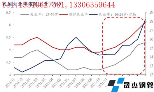 目前我國居民就業情況十分嚴峻,截至2022年4月,我國居民失業率高達6.1%,16-24歲居民失業率高達18.2%,25-59歲居民失業率錄得5.3%,三者較其低點(2020年12月)分別上升,0.9、5.9、0.6個百分點。