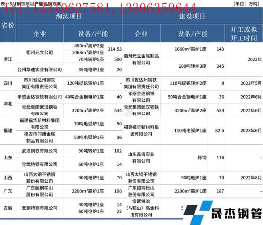 據不完全統計,5月國內9家無縫厚壁鋼管廠家發布鋼鐵產能置換方案。其中,涉及新建煉鋼產能693.5萬噸,新建煉鐵產能864萬噸;涉及淘汰煉鋼產能868萬噸,淘汰煉鐵產能946.53萬噸。