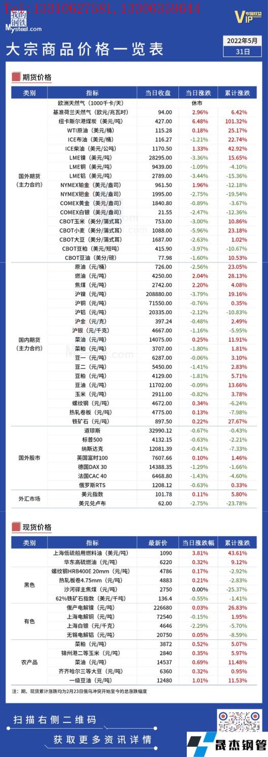 免責聲明:本網(wǎng)站(山東聊城晟杰無縫鋼管廠m.51pvc.cn)刊載的“俄烏局勢丨大宗商品價格一覽表(5月31日)”等均源于網(wǎng)絡(luò),版權(quán)歸原作者所有,且僅代表原作者觀點,本文所載信息僅供參考。轉(zhuǎn)載僅為學習與交流之目的,如無意中侵犯您的合法權(quán)益,請及時聯(lián)系刪除。本網(wǎng)站刊登此篇文章并不意味著本站贊同其觀點或證實其內(nèi)容的真實性,我們不對其科學性、嚴肅性等作任何形式的保證。如果侵犯了您的版權(quán),請盡快聯(lián)系我們予以撤銷,謝謝合作!