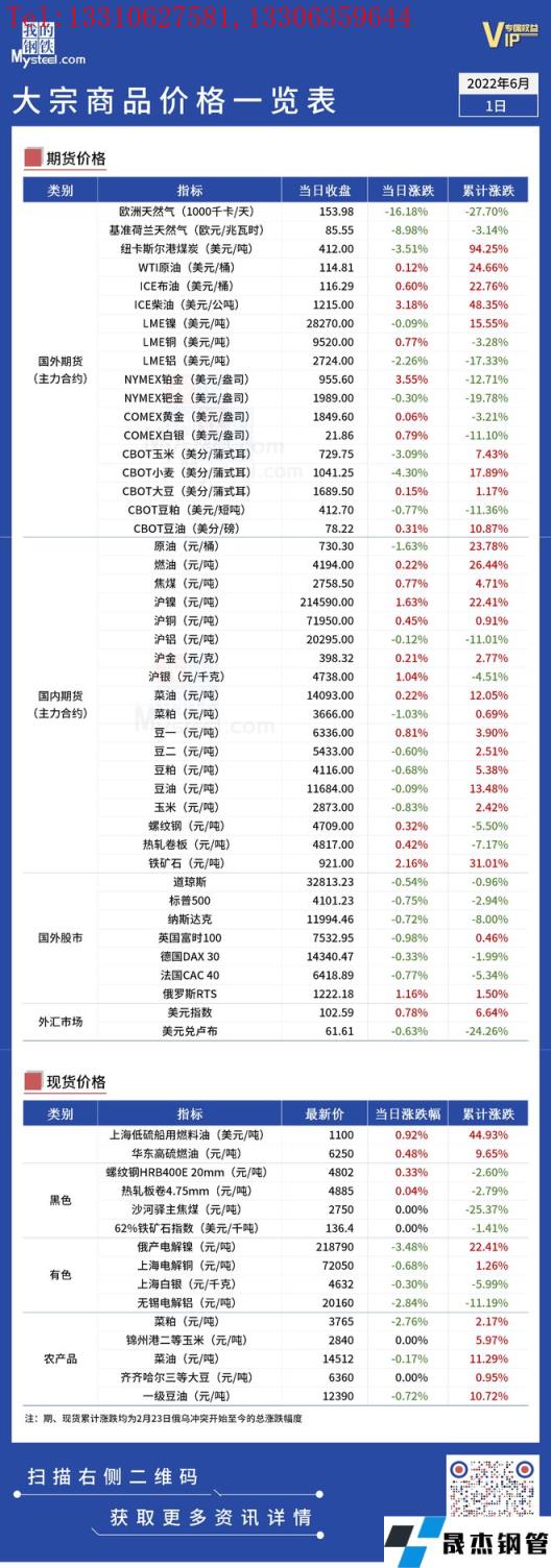 免責聲明:本網站(山東聊城晟杰無縫鋼管廠m.51pvc.cn)刊載的“俄烏局勢丨大宗商品價格一覽表(6月1日)”等均源于網絡,版權歸原作者所有,且僅代表原作者觀點,本文所載信息僅供參考。轉載僅為學習與交流之目的,如無意中侵犯您的合法權益,請及時聯系刪除。本網站刊登此篇文章并不意味著本站贊同其觀點或證實其內容的真實性,我們不對其科學性、嚴肅性等作任何形式的保證。如果侵犯了您的版權,請盡快聯系我們予以撤銷,謝謝合作!