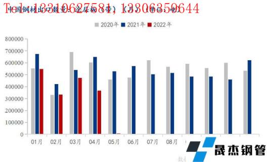 5月份消費端并沒有明顯的起色,因此在訂單上面并沒有太多的增加。成本方面,5月份原料熱軋價格雖然下行,但是今年運輸及天然氣成本上升,加工成本較往年增加。在產(chǎn)能利用率相對較低的情況下,企業(yè)的邊際效益減少。成本方面,5月份邯邢熱卷結(jié)算價格4940元/噸,較上月下降390元/噸,唐山冷軋基料結(jié)算價格集中在4920-4940元/噸。而在彩涂銷售這塊,客戶反饋訂單量依舊較少,生產(chǎn)難以完全飽和,因此從整體情況看,生產(chǎn)企業(yè)利潤微薄。四、4月份出口月環(huán)比年同比雙雙下降