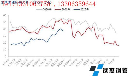 從上圖可以看出,5月份京津冀建筑厚壁無縫鋼管無縫厚壁鋼管廠家的螺紋鋼產(chǎn)量緩慢提升,雖然中下旬產(chǎn)量有所下降,但是仍處于相對高位,不過低于往年同期水平。截至5月底,螺紋鋼周產(chǎn)量為37.51萬噸,產(chǎn)量月環(huán)比提升17.6%,較去年同期低21.3%。本月除承鋼受當(dāng)?shù)匾咔橛绊懀线\輸受阻,高爐有檢修情況,導(dǎo)致建材產(chǎn)量有所下降外,其他無縫厚壁鋼管廠家如敬業(yè)、東華、東海特鋼、樂鋼等月產(chǎn)量均有所提升,且隨著運輸情況緩解,無縫厚壁鋼管廠家廠內(nèi)資源陸續(xù)向周邊市場分流。從調(diào)研情況來看,當(dāng)前無縫厚壁鋼管廠家螺紋鋼生產(chǎn)成本在4500-4600元/噸,雖然利潤微薄,但是6月份也無檢修計劃,且產(chǎn)量或較5月份有提升。