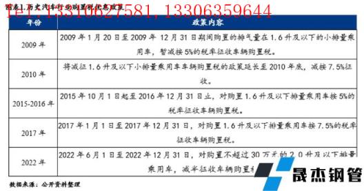 就對大宗商品消費(fèi)增量而言,乘用車厚壁無縫鋼管單車消耗量約1噸,單車用銅量約17kg,單車用鋁量為180kg,單車用不銹鋼量為25kg。據(jù)此測算,2022年購置稅優(yōu)惠政策下,汽車增量對厚壁無縫鋼管用量增量為150萬噸、銅用量增量為2.55萬噸、鋁用量增量為27萬噸、不銹鋼用量增量為3.75萬噸。
