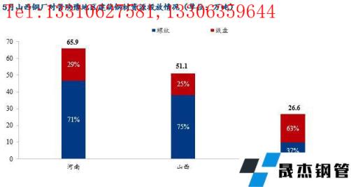 在統(tǒng)計(jì)的11家山西無縫厚壁鋼管廠家中,5月份向晉陜?cè)サ貐^(qū)建筑厚壁無縫鋼管資源投放總量為143.6萬噸,其中螺紋94.6萬噸,占比為66%,線盤49萬噸,占比為34%。分區(qū)域來看,對(duì)山西地區(qū)投放51.1萬噸,占比為36%;對(duì)河南地區(qū)投放65.9萬噸,占比為46%;對(duì)陜西地區(qū)投放26.6萬噸,占比為19%。據(jù)數(shù)據(jù)顯示,5月份山西無縫厚壁鋼管廠家向晉陜?cè)サ貐^(qū)投放建筑厚壁無縫鋼管資源總量較4月份增加24.27萬噸。分區(qū)域來看,5月對(duì)山西地區(qū)的投放增量最大,主要是山西區(qū)域價(jià)格持續(xù)高于周邊市場,山西省內(nèi)資源多在省內(nèi)消化為主。
