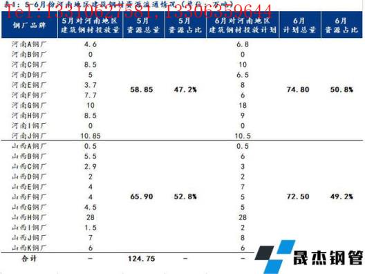 從計(jì)劃投放量來看,在統(tǒng)計(jì)的11家山西無縫厚壁鋼管廠家中,6月份計(jì)劃向晉陜?cè)ナ袌鐾斗沤ㄖ癖跓o縫鋼管資源總計(jì)168萬噸,較5月份投放量環(huán)比或增加11.3萬噸。其中,6月份計(jì)劃向山西地區(qū)投放62萬噸,河南地區(qū)投放72.5萬噸,陜西地區(qū)投放33.5萬噸。